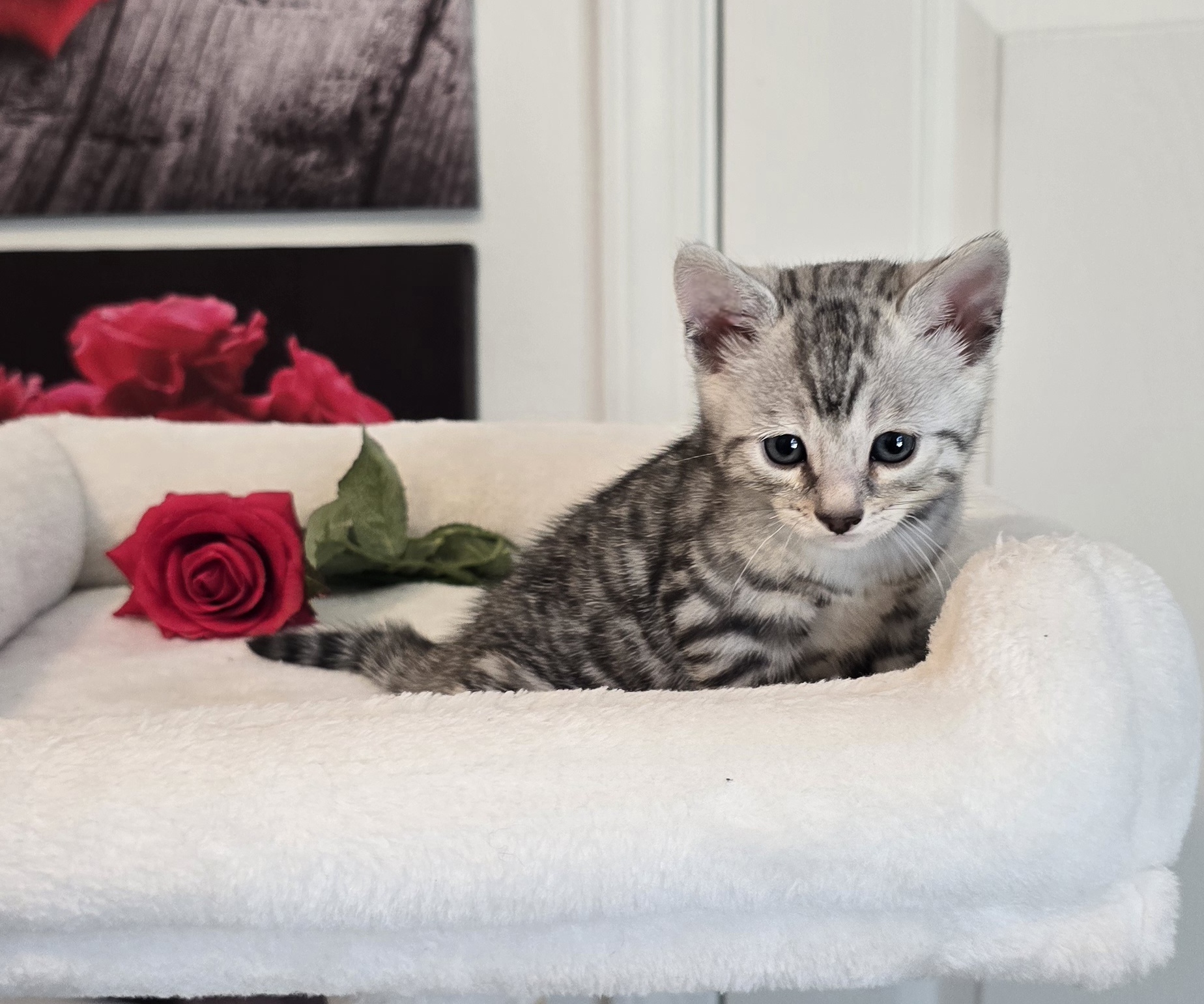 Please keep in mind that when you see photos of our young kittens (as shown below), it does not mean they are ready to leave yet. We typically post photos when kittens are around 4 to 5 weeks old, which is when families may begin reserving their kitten and placing a deposit. However, kittens are usually ready to go to their new homes at 10 to 12 weeks of age, depending on their individual development. This timeframe is essential for their first Wellness Exam with a Veterinarian, first vaccinations, as well as growth, and overall well-being.